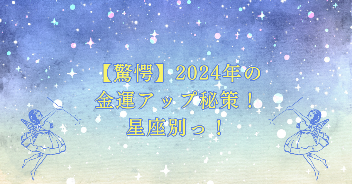 - 2024年は、特に木星の影響により金運アップのチャンスが訪れます。あなたの星座に合わせた方法で、積極的に金運アップに取り組んでみましょう。